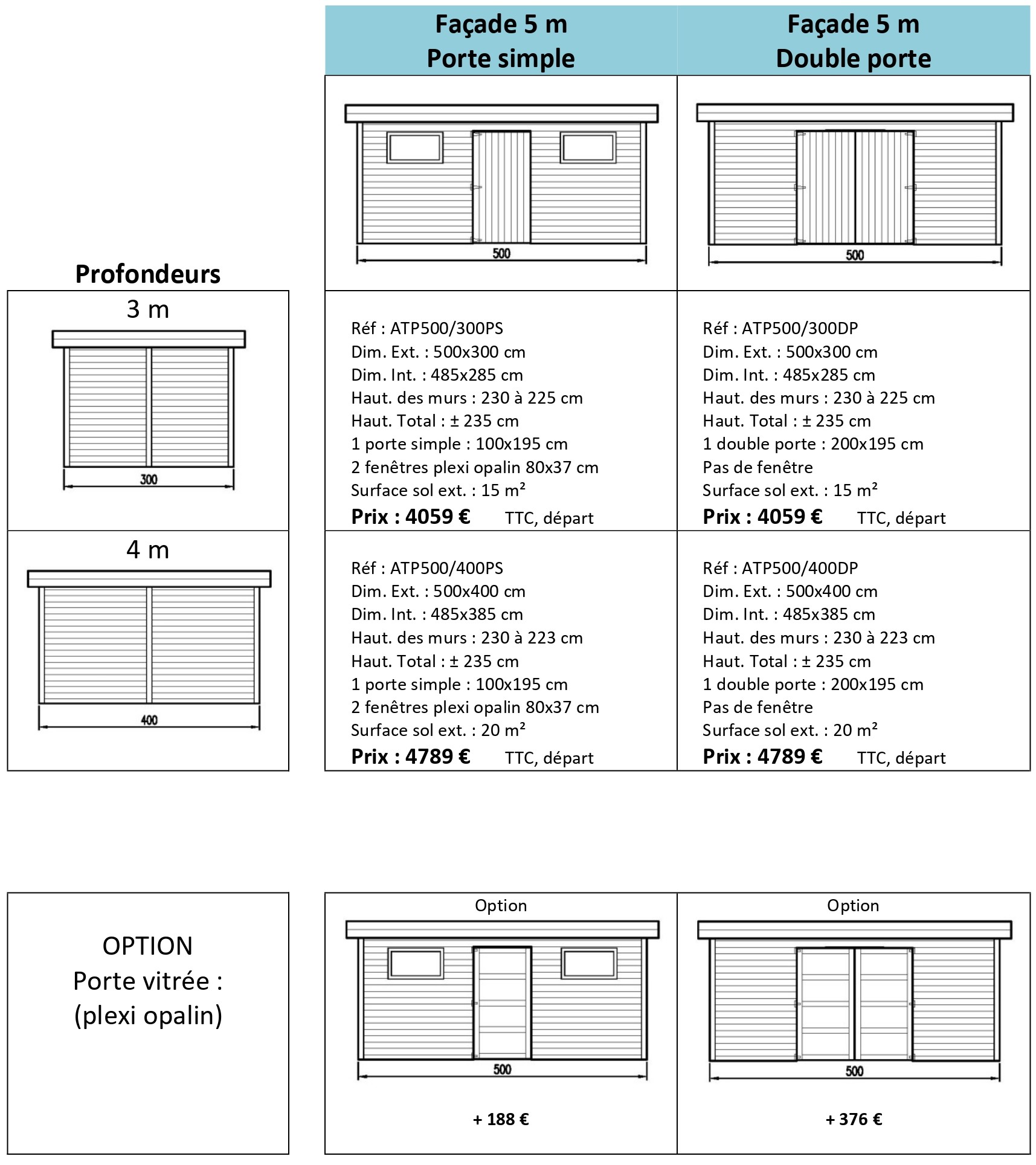 Fabriqués dans nos ateliers, murs en ossature (panneaux), toiture en bâche EPDM, fabriqués pour durer.