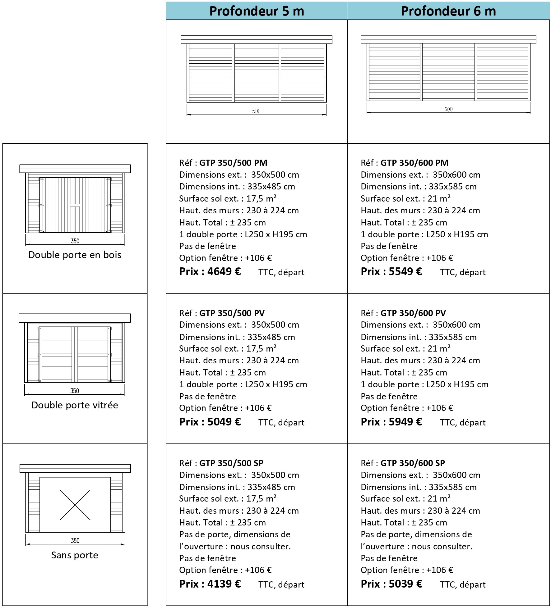 Garages pour une voiture, fabriqués dans nos ateliers, murs en ossature (panneaux), toiture en bâche EPDM, fabriqués pour durer.