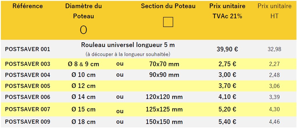 Si vous ne trouvez pas la gaine correspondante à la taille de votre poteau, vous pouvez utiliser les rouleaux de 5 m à découper par vos soins selon vos poteaux (POSTSAVER 001).